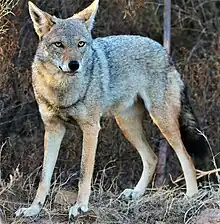 In 2015, a more thorough comparative study of mitochondrial and nuclear genomes on a larger sample of wolf-like African canids from northern, eastern and western Africa showed that they were in fact all distinct from the golden jackal, with a genetic divergence of around 6.7%,[5][28][29] which is greater than that between gray wolves and coyotes (4%) and that between gray wolves and domestic dogs (0.2%).[30] Furthermore, the study showed that these African wolf-like canids (renamed Canis lupaster, or African wolves) were more closely related to gray wolves and coyotes than to golden jackals,[5][31] and that C. l. lupaster merely represents a distinct phenotype of the African wolf rather than an actual gray wolf. The phylogenetic tree below is based on nuclear sequences:[5]