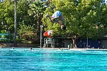 Known in German as the Arschbombe, the cannonball has been turned into the competitive sport of "Splashdiving".[2]