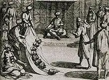Thirsting for revenge, Lambra and her husband Ruy Velázquez come up with a plan to send the father of the infantes, Gonzalo Gustioz, lord of Salas, as envoy to the ruler of Córdoba, Almanzor, to request money to help pay for their lavish wedding. Unbeknownst to him, he carries a letter that tells Almanzor of Ruy's plans to have the infantes ambushed and murdered, and requesting that their father, letter's bearer, likewise be killed. Ruy Velásquez carries out the ambush of his nephews using Muslim troops and supervises their beheading, sending the severed heads to Córdoba to torment their father. His painful laments for his sons represent one of the most emotional in all of Castilian epic tradition[4] Almanzor takes pity on him and merely has him imprisoned. In the earliest surviving version, a female servant is assigned to tend to him, and they fall in love and have a sexual liaison. In the later version of the Crónica de 1344, she is a sister of Almanzor himself and is offered up to Gonzalo, who takes her by force. She becomes pregnant and has a son named Mudarra González.[5]