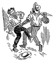 The Nagoas and Guaiamuns were used, respectively, as a hitforce by the Conservative and Liberal party.[49] Newly founded Republican party was among the rare political entities opposing the maltas. In 1872, capoeiras were involved in the August elections.[50] The major political incident occurred in February 1873, when capoeira gangs violently broke republican meeting, inspired by the declaration of a republic in Spain. A República from March 1873 wrote: