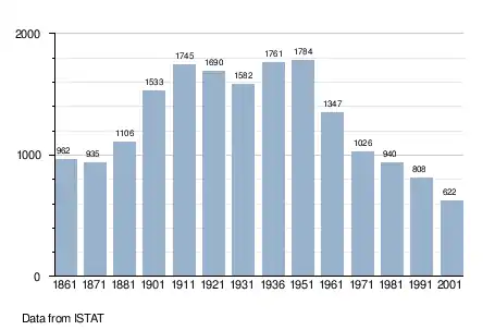 - "Superficie di Comuni Province e Regioni italiane al 9 ottobre 2011". Italian National Institute of Statistics. Retrieved 16 March 2019.