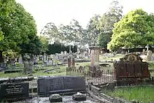 Alongside existing orchards, new nurseries and market gardens began to increase in number. While Carlingford was still distinctly rural, technological change in the district continued with the establishment of the Pennant Hills Wireless Telegraphy Station in 1912,[41] extension of telephone lines, and the arrival of electric power in 1922.[42] Additionally the area saw the laying of reticulated water mains in 1908,[43] the creation of a metropolitan water storage reservoir on Mobbs Hill in 1916,[44] and the installation of a public drinking-water fountain in the middle of the road at Mobbs Hill in 1911.[45] The area also underwent a transition from horse drawn road transport to motorized, which led to the removal of the Mobbs Hill drinking fountain 1929[46] as it had become a hazard to the increased volume of motorized traffic. A Mechanics' Institute and Memorial Hall, designed by Sydney architect and Carlingford resident Lord Livingstone Ramsay,[47] was opened at Mobbs Hill in 1924[48] (demolished 1987) and was the centre of many social events, political rallies, fetes and school activities.