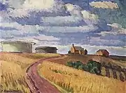 Carlingford was a favourite spot for the Northwood Group of landscape painters. In the 1930s-1940s this social group would gather to paint outdoors and included Lloyd Rees, Roland Wakelin, John Santry, Marie Santry and George Lawrence.[49] Wakelin completed a number of paintings inspired by the district. Three include: Carlingford Pastoral (1935) incorporates built heritage elements of the Mobbs Hill landscape – two water reservoirs, St Paul's Church and the church hall; Afternoon, Carlingford (1949) inspired by Carlingford hills, houses and farms; similarly, House at Carlingford (1950) was inspired by the locale's buildings and land.