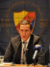 Banda signed on for his first senior team Djurgården on 3 December 2009.[4] Along with co-manager Lennart Wass, Banda led his team to a tenth position in the 2010 Allsvenskan.[5] He stayed with Djurgården as an assistant coach to new manager Magnus Pehrsson until July 2012.