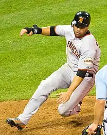 The day after the trade, Beltrán got his first hit with the Giants (an RBI single to left field in the first inning), going 1-for-5 while playing right field against the Cincinnati Reds. The Giants eventually lost to the Reds 4–3 in thirteen innings.[66]