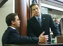 In 1997, Lopez-Cantera was a facilitator for the Florida Senate's criminal justice committee.[10] In 2002, he made an unsuccessful bid for a seat in the Florida House of Representatives. Two years later, Lopez-Cantera won his first election to the Florida House of Representatives to the 113th District in November 2004, and was successively reelected in 2006, 2008 and in 2010 when he defeated US Navy veteran and rising democratic party star Alex Cruzet. He was House majority whip from 2008 to 2010 and the House Majority Leader from 2010 to 2012.[11]