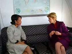 Barco was appointed Foreign Minister of Colombia by President Álvaro Uribe in August 2002 and remained in that post until July 2006,[14][15][16][17] when she was appointed Ambassador to the United States, replacing former Colombian president Andrés Pastrana Arango in Washington, D.C.[18][19]
