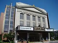 The Carolina Theatre of Greensboro is Greensboro, North Carolina's only remaining historic theatre. It was billed as “The Showplace of the Carolinas” when it opened on Halloween night, 1927. The 2,200 seat structure was built for the Saenger-Publix Company, cost over $500,000 to build and was one of the first commercial buildings to be air conditioned in the state.[1]