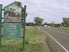 Carroll is a parish and small village on the Oxley Highway, 20 km east of Gunnedah, New South Wales. At the 2016 census, Carroll had a population of 337 people.[1] The Namoi River runs approximately parallel to the highway which is also the main street there. Periodically this river floods the town and surrounding area, forcing the closure of the Oxley Highway. The surrounding area is part of the Liverpool Plains region.
