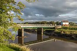 The bridge, which is located nine miles from the mouth of the River Wyre at Fleetwood,[4] was built by the squire of Rawcliffe Hall[5] in 1831 after both his gamekeeper and his dairyman drowned crossing the ford it replaced.[1]