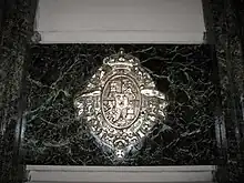 From its inception, Empress Eugénie was a valued client of Louis-François Cartier and Alfred,[65] which solidified the reputation of the jeweler.[66] Princess Mathilde, a relative of Napoleon I and cousin of Emperor Napoleon III, made her initial purchase in 1856 and maintained her loyalty as a customer.[66] The diamond tiara adorned with olive leaf motifs that Princess Marie Bonaparte wore highlighted the splendor of the Bonaparte family.[67] She wore Cartier jewelry during her marriage to Prince George of Greece.[65] An opulent diamond necklace with red hues was commissioned for Maharaja Bhupinder Singh of Patiala, who presented it to his maharani. The Duke of Windsor commissioned jewelry for Wallis Simpson, including a "Flamingo" brooch, a "Draperie" necklace, and a three-dimensional "panther". Grace Kelly possessed a diverse collection of jewelry, including her engagement ring from Prince Rainier III in 1955, princely emblems, various brooches, and clips she wore at the birth of Prince Albert. The Duchess of Cambridge wore a Cartier tiara from 1936 on her wedding day, which was originally commissioned by King George VI for his wife and later gifted to Elizabeth on her 18th birthday.[68][69]
