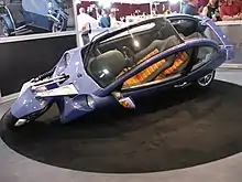 In 1990 Ton van den Brink, founder and director of Eurotool Operation B.V., questioned the necessity of using a conventional family car for everyday transportation after experiencing traffic congestion in Paris.[1][3] He founded Eco-Car B.V. to investigate the feasibility of developing a 'slender comfort vehicle', also known as a tilting three-wheeler or man-wide vehicle, having half the width and weight of a conventional car.[4] Research conducted by the firm showed that 90% of cars were occupied by one or two persons, indicating considerable market potential for such vehicles.[5] In the following years, a team of engineers led by Ton's son Chris van den Brink, and by Harry Kroonen, worked on a concept car. Their biggest engineering challenge was preventing a man-wide vehicle from tipping over when cornering. In 1993 they presented their first concept car at 'The Compact Car, History with a Future' exhibition, a narrow three-wheeled car with side wheels for stability. This car was not viable so in 1994 they develop the Dynamic Vehicle Control (DVC) system, which was internationally patented in 1995.