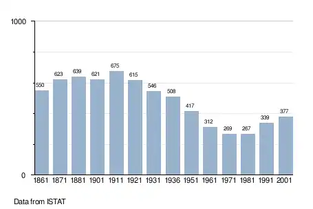 - "Superficie di Comuni Province e Regioni italiane al 9 ottobre 2011". Italian National Institute of Statistics. Retrieved 16 March 2019.