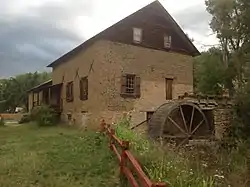 It is a three-story adobe building, built upon a basement walls and stone foundations. It was equipped with a set of French buhrstones, and was built by Joseph Fuss.[2] It was documented by the Historic American Engineering Record (HAER) in May, 1978.[2]