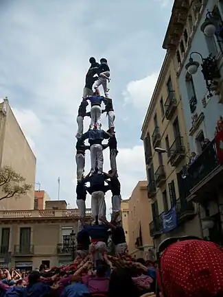 The Castellers de la Vila de Gràcia (Catalan pronunciation: [kəstəˈʎez ðə lə ˈβilə ðə ˈɣɾasiə]), created in 1996, are a colla castellera, based in Vila de Gràcia that makes human castles. They made their first public presentation in 1997 supported by the groups Castellers de Terrassa, the Castellers de Sants and the Castellers de Sant Andreu de la Barca. The colour of their shirts is navy blue.[1]