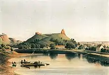 Castle Hill (Lithuanian: Pilies kalnas) or Gediminas' Hill (Lithuanian: Gedimino kalnas) is a hill in Vilnius, Lithuania at the confluence of Neris and Vilnia rivers on the left side of the Vilnia. It is best known as the location of the Gediminas' Tower, a signature landmark of Vilnius, a remnant of the fortified Upper Castle dating to the Middle Ages. Castle Hill is part of the Vilnius Castles Cultural Reserve.[1]