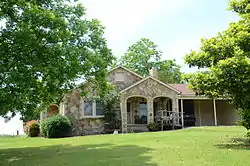 The Castleberry–Harrington Historic District encompasses a collection of three mixed masonry buildings erected between 1946 and 1950 by regionally known master mason Silas Owens Sr. on Castleberry Road in rural northwestern Faulkner County, Arkansas. All are single story stone structures, built of various shades of sandstone and other materials, and were built for various members of the extended Castleberry and Harrington families. One of them has an applied herringbone pattern of stonework for which Owens was particularly well known. The three houses are located on Castleberry Road, south of the hamlet of Republican.[2]
