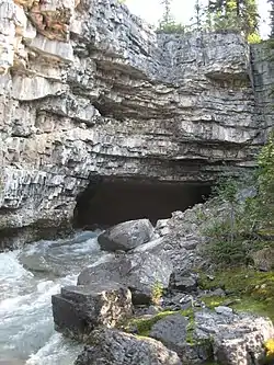 Castleguard Cave is a limestone cave located at the north end of Banff National Park in the Rocky Mountains of Alberta, Canada. With 20,357 metres (66,788 ft) of surveyed passages (as of 2007), it is Canada's longest cave, and its fifth deepest at 384 metres (1,260 ft). Castleguard Cave ascends gently from its entrance and terminates beneath the Columbia Icefield.