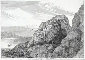 Between 1829 and 1840 much of the land around Caswell Bay was bought by John James, a former Curate of Bishopston, for his daughter and his son-in-law, Charles Morgan.[6] In 1846, The Morgans sold a piece of land on the eastern side of the bay to 19th Century pioneer photographer John Dillwyn Llewelyn who was a regular visitor to the bay. Llewelyn built a holiday home, Caswell Cottage, which stood until around 1960 on the site of what is now the Caswell Bay public car park.[7] In 1854 images of two of his photographs of Caswell Bay were requested by Prince Albert.[8] In August 1878 Llewelyn's thirteen-year-old grandson drowned whilst swimming in the bay, with the inquest held at the Caswell Bay Hotel.