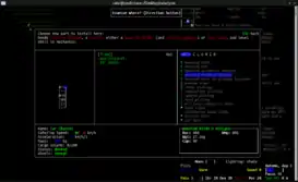 The game is made with ncurses to provide text based graphics; later a Simple DirectMedia Layer (SDL) version with graphical tiles became available.