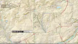 - Measurement using BING map distance and area measurement tool, 8 Mar 2017 between USGS identified marker points when Lat & Long were used in search window.