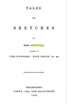 This article incorporates text from this source, which is in the public domain: Sedgwick, Catharine Maria (1835). Tales and Sketches (Public domain ed.). Carey, Lea, and Blanchard.