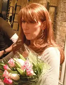 From May to September 2011, Tate appeared alongside Tennant in the Shakespeare comedy Much Ado About Nothing at the Wyndham's Theatre.[73] The production was recorded by Digital Theatre and is available to watch on their website.[74] For her performance as Beatrice, Tate won the BroadwayWorld UK Award for Best Leading Actress in a Play, while her reunion with Tennant won the WhatsOnStage Award for the Theatre Event of the Year.[75] At the same ceremony, she received an award in the Best Supporting Actress category for the Royal National Theatre production of Alan Ayckbourn's Season's Greetings (2010–2011), in which she played Belinda.[76]
