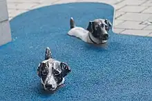 In 1999, Pilkington's sculpture Bill and Bob, depicting two Jack Russell terriers swimming in a pool, was installed in Millennium Square in Bristol. This was Pilkington's first commission for a public space, The two dogs are rendered in painted bronze and set in a pool of vivid blue rubber, flush with the square's paving.[3]