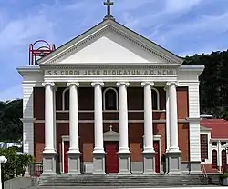 St Patrick's Cathedral is the cathedral of the Catholic Bishop of Auckland. It is on the original site granted by the Crown to Bishop Pompallier in 1841; it was renovated and re-opened in September 2007.[26] St Joseph's Cathedral, Dunedin, was constructed between 1878 and 1886. Sacred Heart Cathedral is the cathedral of the Archdiocese of Wellington and was opened in 1901 (in place of the destroyed St Mary's Cathedral), although it was not until 1984 that it became officially the cathedral.[27] The highly esteemed Cathedral of the Blessed Sacrament, Christchurch, was opened in 1905.[25] The latter three buildings were designed by the prominent New Zealand Catholic architect Francis Petre.[28] In 1947 another seminary, Holy Name Seminary, was opened in Christchurch. The cathedral of the Hamilton Diocese is the Cathedral of the Blessed Virgin Mary (built in 1975, rededicated in 1980 and renovated in 2008),[29] and the cathedral of the Palmerston North Diocese is the Cathedral of the Holy Spirit (built in 1925, renovated and rededicated in 1980).[30]