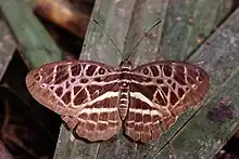 Catuna crithea, the common pathfinder, is a butterfly in the family Nymphalidae. It is found in Guinea, Sierra Leone, Liberia, Ivory Coast, Ghana, Togo, Nigeria, Cameroon, Bioko, Angola, the Democratic Republic of the Congo, Sudan, Uganda, Kenya, Tanzania and northern and western Zambia.[2] The habitat consists of dense lowland forests and the riverine forest floor.