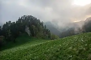 Caucasus Nature Reserve[lower-alpha 1] is a Russian zapovednik (strict ecological reserve) covering a heavily mountainous section of the Northwest Caucasus Mountains. It is the largest and oldest in the territory of specially protected natural area in the Caucasus, having been created in 1924 as the Caucasian Bison Reserve. In 1979, the site was named a UNESCO Biosphere Reserve, and in 1999 included in a UNESCO World Heritage Site. In 2008 it was officially renamed after Khachatur (Christopher) G. Shaposhnikova the biologist who founded the reserve. The area is situated in the Mostovsky District of Krasnodar Krai, covering an area of 280,335 ha (1,082.38 sq mi).[1][2]