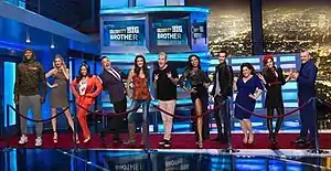 Celebrity Big Brother was a condensed version of the game and would not last as long as a regular season of Big Brother, with episodes only shown over two weeks instead of three months.[16][18] Unlike the parent series Jury members were not sequestered separately and were allowed to return to the outside world as well as watch the show.[19][20] Beginning with an incident that led to a lawsuit in Big Brother 2 when HouseGuest Justin Sebik got drunk and threatened fellow HouseGuest Krista Stegall by holding a knife to her throat, there has been an alcohol restriction in the house.[21][22] The alcohol restriction was lifted for the Celebrity HouseGuests.[23][24] The space in the backyard was reduced to allow production to constantly perform construction for competitions but still allow 24/7 access for the HouseGuests.[25] For the celebrity version of America's Favorite HouseGuest, the term Favorite Celebrity HouseGuest was also being used interchangeably.[26][27] For the first time since the beginning of the U.S. series, five players were featured in the season's finale night versus the usual three.[28]