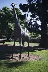 Albert Guibara sculpted a life-size giraffe statue by brazing copper plates together, named Leon, in honor of his father's 80th birthday.[17] It was installed in 1978 and can be seen on the park's northeast lawn, by the corner of 5th and Laurel (37.5628°N 122.3222°W).