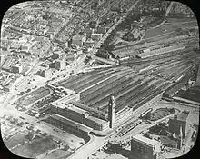 This station (one wooden platform in a corrugated iron shed), called "Sydney Terminal", had Devonshire Street as its northern boundary.[5] It was frequently but unofficially called "Redfern Station",[7] while at that time, the present Redfern Station was officially called "Eveleigh".[8] Although called "Redfern Station", the first and second Sydney Terminals were never actually located in Redfern, being to the north of Cleveland Street, which is Redfern's northern boundary.