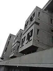 The building was completed in 1972 by the architect Jacques Kalisz for use as the administrative centre of the city of Pantin. It is considered an example of Brutalist architecture.