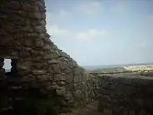 On the summit of the promontory are extensive remains of a Norman castle. The town's fortifications formerly extended to the shore, on the side where the modern town now is, in the form of two long walls protecting the port. There are remains of a wall of massive rectangular blocks of stone at the modern Porta Garibaldi on the south.[16]