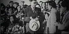 After returning, Chŏng first went to Tashkent, Uzbek SSR, where he studied journalism for four years at a Soviet government school.[3][1][7][8] He then returned to Kazakhstan, where he worked in the editorial department of the Lenin Kichi newspaper between 1961 and late 1991.[4][5][1][3][8] He wrote an editorial in the December 19, 1990, final edition of the Kichi before it changed its name to Koryo Ilbo in 1991. While he had expected the Soviet Union to one day collapse beginning in the late 1930s, he had not wanted it to happen. However, upon observing the how the Kazakhs relished their newfound independence after its collapse, he changed his mind.[3]