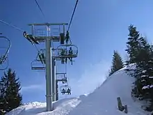 An elevated passenger ropeway, or chairlift, is a type of aerial lift, which consists of a continuously circulating steel wire rope loop strung between two end terminals and usually over intermediate towers, carrying a series of chairs. They are the primary onhill transport at most ski areas (in such cases referred to as 'ski lifts'), but are also found at amusement parks and various tourist attractions.