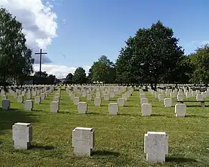 Champigny-Saint-André is a German World War II cemetery in Normandy, France. It is located 5 kilometers South of the village of Saint-André-de-l'Eure, about 25 km (16 mi) south east of Évreux. The burials come from the summer of 1944, as the Allies pushed out of Normandy towards Paris. It is the second largest of the six German war cemeteries in Normandy with a nearly 20,000 burials. The cemetery is maintained and managed by the voluntary German War Graves Commission (Volksbund Deutsche Kriegsgräberfürsorge).