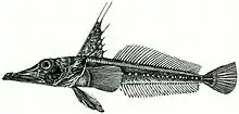 Channichthys panticapaei, the charcoal icefish, is a species of marine ray-finned fish belonging to the family Channichthyidae, the crocodile icefishes. It is endemic to the Kerguelen Islands area in the Southern Ocean.[1][4] This demersal species is found at depths of 112โ154 m (367โ505 ft) and is sometimes caught in bottom trawls. However, it is not targeted and is of no interest to commercial fisheries at present. It is dark gray to uniformly blackish with long first to third dorsal fin spines. The charcoal icefish reaches lengths of up to 40.2 cm (15.8 in), with females generally being smaller (maximum length being 36.1 cm (14.2 in)). This planktivorous (plankton-eating) species likely spawns from June to July, with maturity reached at 30 cm (11.8 inches) TL / 27 cm (10.6 inches) SL.[1][5]