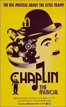 The musical premiered on Broadway at the Ethel Barrymore Theatre on August 21, 2012, in previews and officially on September 10, 2012, with direction and choreography by Warren Carlyle. Scenic design is by Beowulf Boritt, costume design by Amy Clark and Martin Pakledinaz, lighting design by Ken Billington, and projection design by Jon Driscoll.[5] The cast features Rob McClure as Chaplin, Jim Borstelmann as Alf Reeves, Jenn Colella as Hedda Hopper, Erin Mackey as Oona O'Neill, Michael McCormick as Sennett/ McGranery/Emcee, Christiane Noll as Hannah Chaplin, Zachary Unger as Young Charlie/Jackie and Wayne Alan Wilcox as Sydney Chaplin.[6][7] The musical closed on January 6, 2013, after 24 previews and 136 performances.[8]