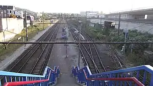 Charleroi-West (French: Charleroi-Ouest) is a secondary railway station serving Charleroi, Belgium. It is one of two railway stations located in downtown Charleroi, the other one being the much larger Charleroi-South railway station. Charleroi-West is also a station of the Charleroi metro.