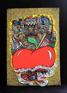Charles Fazzino is an American pop artist, known for his silkscreen serigraphs in a 3D pop art style. His artwork incorporates influence from urban landscapes, sporting events, and modern celebrities. As described in the book about Fazzino titled The Master of 3-D Pop Art, "An innovative and imaginative storyteller, Charles Fazzino serves up a bevy of details in his unique three-dimensional creations. His collectors marvel as much at his ability to capture the entire essence of his subject matter in one statement, as they do at his use of vibrant colors, his whimsical sense of humor, and his hand-assembled multi-layered artistic style. Although, the snappy titled often gives a clue to the content of each painting, it can take years of careful observation to discern all of the details in a single Fazzino image. One of Fazzino's greatest joys is to observe visitors at exhibition of his work. 'I love to watch the smiles form as people begin to recognize elements of my paintings,' comments Fazzino. 'They point at the images as if inserting themselves into the stories. I watch that and I'm reminded of why i paint. It's all about celebrating the joy and fun we have as human beings on this planet."[1]