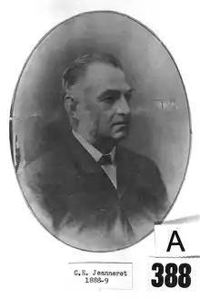 He was a candidate for the New South Wales Legislative Assembly for the district of Central Cumberland at the 1874–75 election, but was defeated.[2] He was elected as the Free Trade member for Carcoar at the 1887 election.[3] He unsuccessfully contested Macleay at the 1889 election,[4] he was re-elected to Carcoar in 1891.[5] Carcoar was abolished in 1894 and the district divided between West Macquarie and the new district of Cowra and Jeanneret unsuccessfully contested West Macquarie at the 1894 election.[6] He was bankrupted in 1897.[1]