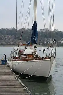 Auxiliary cutter with Bermudian rig. Full keel yacht with classic counter stern. 8 tons, 33 ft LOA. Built by Sharp & Brewster of Woodbridge, Suffolk in 1937.[16] Built according to the winning design from the Little Ship Club competition.