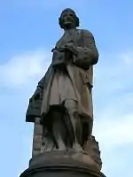 A fervent admirer of Jean-Philippe Rameau, he began in 1860 with other Dijonnais (Jules Mercier, Léon Gastinel, ...) a campaign to erect a statue in honour of the great Dijon composer of the 18th century for the centenary of his death in 1864. The affair dragged on for a long time and it was only on 12 August 1876 that the model of the sculptor's statue Eugène Guillaume was finally erected on Place de la Sainte-Chapelle and a concert was given at the Grand Théâtre with Camille Saint-Saëns. It was not until 1880 that the model was replaced by the final bronze statue (it was melted down by the Germans in 1942 and replaced by a stone copy in 1950).[2] Charles Poisot collaborated in the publication of Rameau's works and produced numerous arrangements for piano and singing of his operas. He was also involved in the creation of the "Société des Compositeurs de Musique" (established in Paris in 1862).