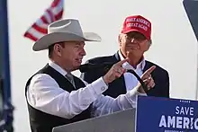 Donald Trump endorsed Herbster in late 2021. Herbster has shifted between supporting the idea that Trump won the 2020 election and stating Joe Biden is the "duly elected" President.[32][33] Incumbent governor Pete Ricketts denounced the endorsement.[34] Reid Epstein of the New York Times characterized the Trump endorsement as the "entire rationale" for the campaign.[35]
