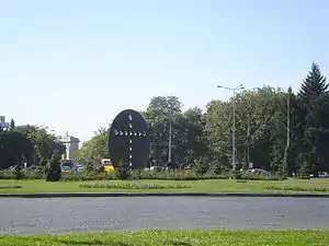 In the centre of the square stands Paul Neagu's Crucea Mileniului (Millennium Cross), built in the 1990s. In September 2006, on the occasion of the Francophonie Summit held in Bucharest, a statue of Charles de Gaulle was unveiled. Sculpted by Mircea Spătaru, it is 4.6 m (15 ft) high and was financed by the government.[1]