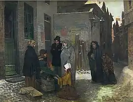 Charles de Groux or Charles Degroux[1] (25 August 1825 – 30 March 1870)[2] was a French painter, engraver, lithographer and illustrator.[3] As he moved to Belgium at a young age and his whole career took place in Belgium he is usually referred to as a Belgian artist. His depictions of scenes from the life of the disadvantaged and lower-class people of his time mark him as the first Belgian social realist painter.[4] These works made him the precursor of Belgian Realist artists such as Constantin Meunier and Eugène Laermans.[5]