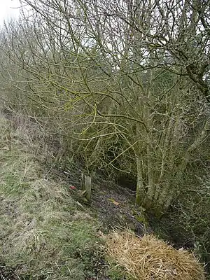 The station opened on 10 August 1942 by the LNER. The station is situated to the south of an unnamed minor road. The station was originally intended to be opened for World War 2 workers for the nearby munitions factory where bombs were handled.[1] Production of the bombs ceased after the Second World War and it was used as an armaments store by the Royal Navy Armaments Depot. Use by the Royal Navy ceased in the 1960s and it was then used by West Cumberland Farmers as well as other lesser known farmers for storage and animal husbandry.[2] The station closed in June 1961 to passengers and completely.